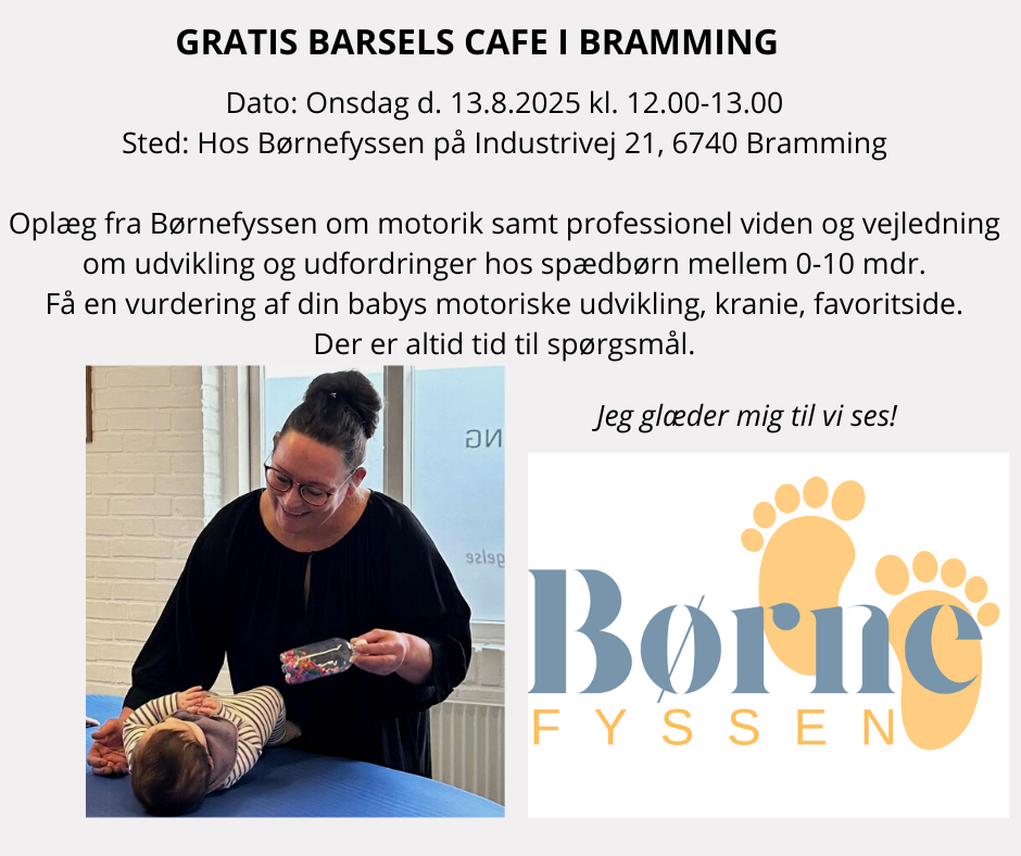 Medius Holsted Højmarksvej 18, HolstedBørnefyssen holder Babytummel dag i Medius d. 21.8.2025 kl. 10.00 Er din baby mellem 3-10 mdr. og har du lyst til at få inspiration til, hvad du kan lege med din baby hjemme. Du får øvelser som styrker motorikken og professionel vejledning lige til at tage med hjem. Du får viden om, hvorfor vi gør […]